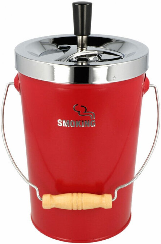 Nejen venkovní cigaretový popelník otočný Smoking XXL. Velký samozhášecí kovový popelník na cigarety ve tvaru kýble je v červené barvě se stříbrným nápisem Smoking. Díky velikosti popelníku ho můžeme využít i jako menší odpadkový koš.