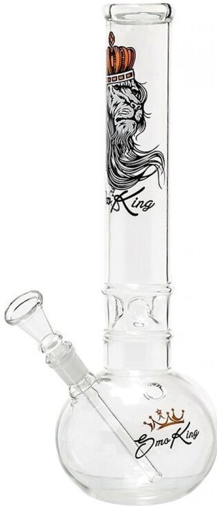 Skleněný bong Goat je transparentní bong zdobený na čelní straně a na základně barevným motivem SmoKing, který je ukončený slabším hrdlem. Ice bong s kulatou základnou je vybavený "výstupky" pro udržení kostek ledu k ochlazení kouře.