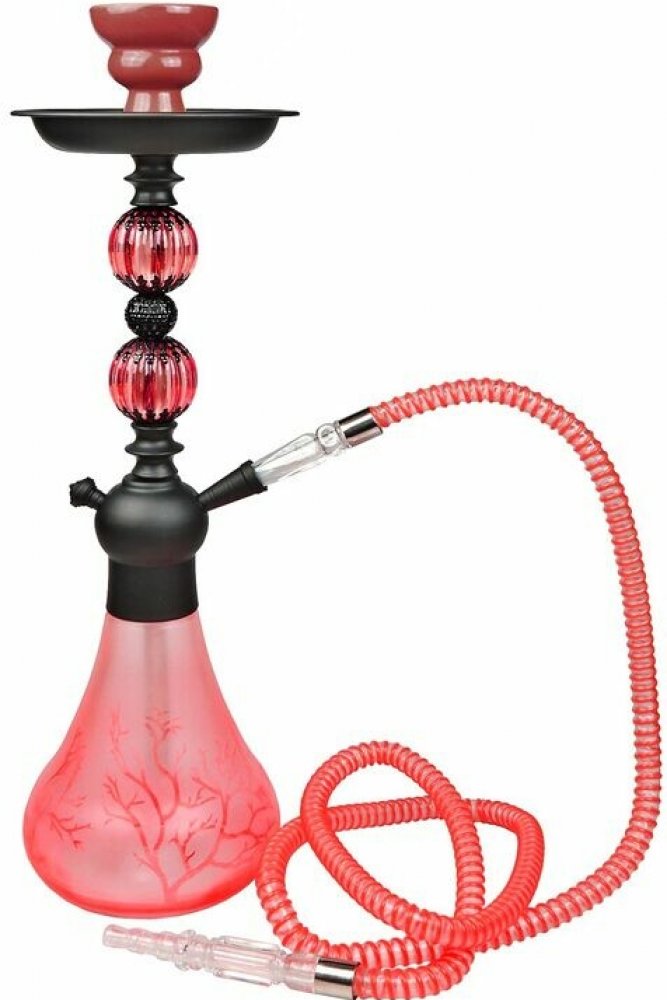 Vodní dýmka Branch Red je vysoká 45 cm. Jednošlauchová vodní dýmka je v matném červeno černém provedení se skleněnou vázou zdobenou leptaným motivem. Vodní dýmka je dodávaná s jedním gumovým šlauchem, který je ukončený plastovým náustkem. Kovové tělo dýmky se upevňuje nasunutím na vázu s použitím přiloženého gumového těsnění.