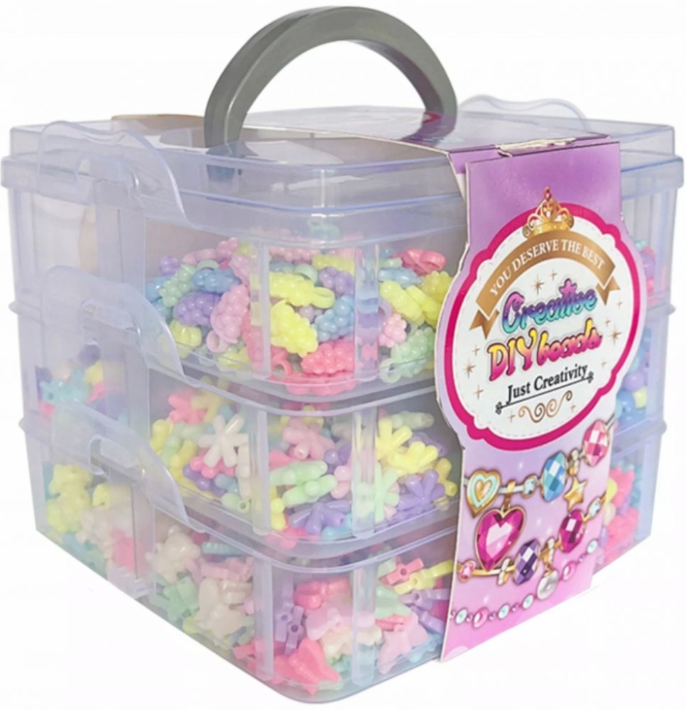 Celá sada je umístěná v praktickém průhledném kufříku s rukojetí. Kufřík se skládá z 3 vrstev a na každé z nich se nacházejí jiné druhy korálků a nástrojů k tvorbě.