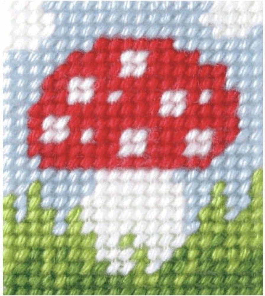 Kreativní sada šití pro děti s motivem muchomůrky. Vyšívání pro nejmenší nebo pro začátečníky s rozměry 11 x 13 cm. Kód výrobce: 9718.