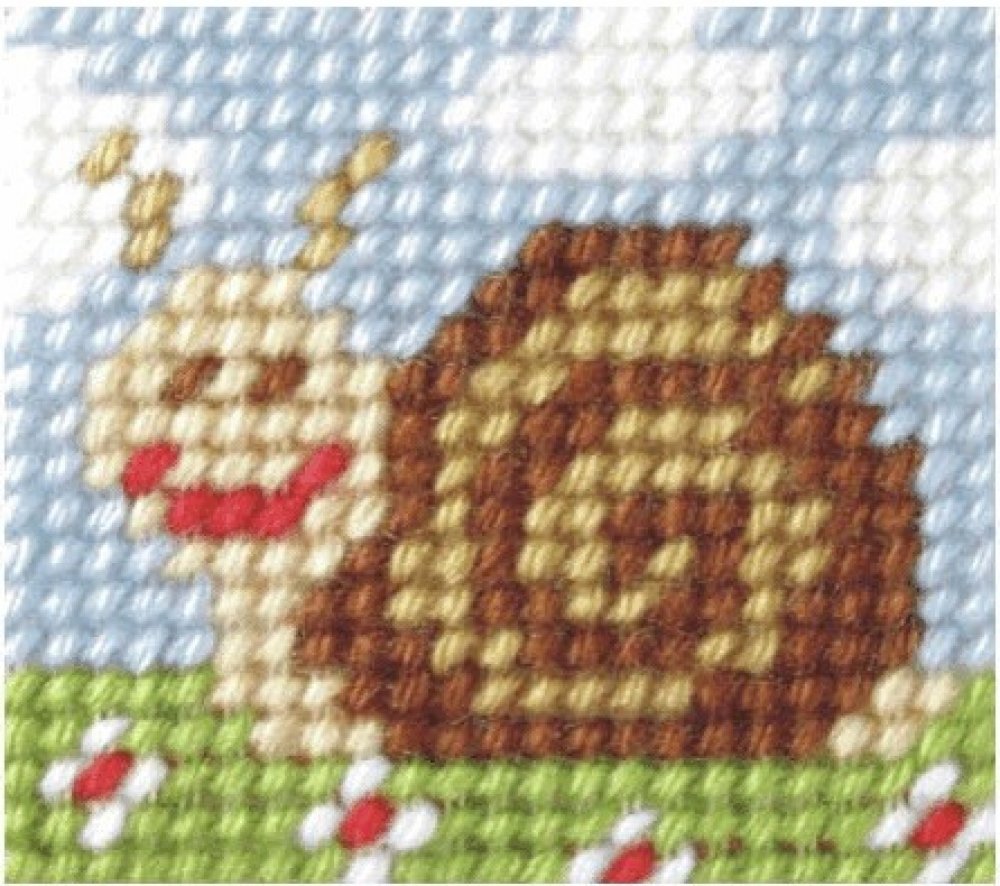 Kreativní sada šití pro děti s motivem šneka. Vyšívání pro nejmenší nebo pro začátečníky s rozměry 11 x 13 cm. Kód výrobce: 9719.