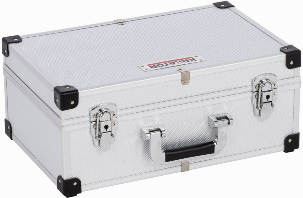KREATOR KRT640260S je hliníkový kufr v stříbrné barvě s rozměry 420x265x173 mm, navržený pro bezpečné a organizované uložení nářadí. Tento kufr nabízí možnost uložení 60CD, nastavitelné přihrádky pro přizpůsobení prostoru podle potřeb a možnost uzamčení pro vyšší úroveň bezpečnosti. Ideální pro profesionály, kteří potřebují robustní a flexibilní řešení pro přenášení a uskladnění nástrojů a příslušenství.