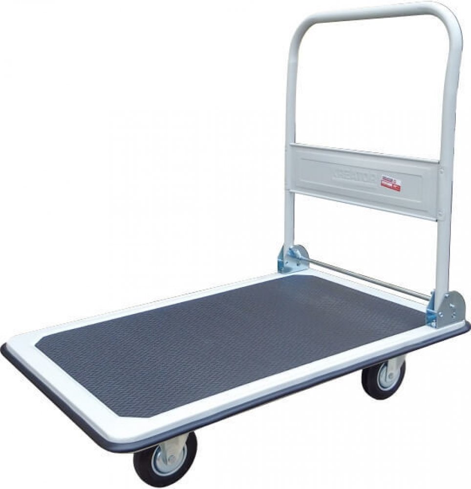 Madlo lze sklápět, což ocení každý, kdo má ve skladu nebo dílně málo místa. Rukojeť jednoduše sklopíte až ke spodní desce a vozík opřete o zeď. Takto uskladněný nezabere více než 20 centimetrů.