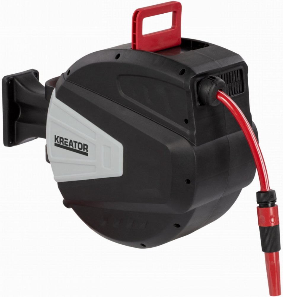 Pokud chcete zalévat celou zahradu bez objemné zahradní hadice, která vám neustále překáží, tento naviják a zahradní hadice KRTGR6711 Kreator je zahradním nářadím pro vás. Co můžete s tímto hadicovým navijákem dělat? Tento hadicový naviják lze snadno připevnit na zeď a připojit ke kohoutku. Ujistěte se, že jej namontujete maximálně 1,5 metru od kohoutku, protože tak dlouhá je připojovací hadice. Naviják na hadici obsahuje 15 m ½“ zahradní hadici, takže je ideální pro malé až středně velké zahrady. Pomocí montážního držáku připevněte naviják hadice ke zdi. Zahradní hadice tak bude vždy úhledně uložena a nebude vám neustále překážet. V zimních měsících můžete hadicový naviják odpojit od držáku a snadno jej uložit, díky jeho kompaktní velikosti. Naviják hadice sleduje vaše pohyby a může se otáčet o 180st, čímž zabraňuje ohýbání nebo zamotávání hadice. Díky nízké hmotnosti a praktické rukojeti můžete tuto hadici bez námahy přemístit, například ji uložit na zimu. Pokud chcete zalévat celou zahradu bez objemné zahradní hadice, která vám neustále překáží, tento naviják a zahradní hadice KRTGR6711 Kreator je zahradním nářadím pro vás. Co můžete s tímto hadicovým navijákem dělat? Tento hadicový naviják lze snadno připevnit na zeď a připojit ke kohoutku. Ujistěte se, že jej namontujete maximálně 1,5 metru od kohoutku, protože tak dlouhá je připojovací hadice. Naviják na hadici obsahuje 15 m ½“ zahradní hadici, takže je ideální pro malé až středně velké zahrady. Pomocí montážního držáku připevněte naviják hadice ke zdi. Zahradní hadice tak bude vždy úhledně uložena a nebude vám neustále překážet. V zimních měsících můžete hadicový naviják odpojit od držáku a snadno jej uložit, díky jeho kompaktní velikosti. Naviják hadice sleduje vaše pohyby a může se otáčet o 180st, čímž zabraňuje ohýbání nebo zamotávání hadice. Díky nízké hmotnosti a praktické rukojeti můžete tuto hadici bez námahy přemístit, například ji uložit na zimu.