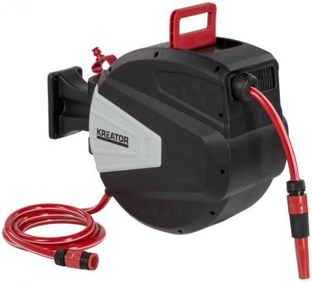 Pokud chcete zalévat celou zahradu bez objemné zahradní hadice, která vám neustále překáží, tento naviják a zahradní hadice KRTGR6713 Kreator je zahradním nářadím pro vás. Co můžete s tímto hadicovým navijákem dělat? Tento hadicový naviják lze snadno připevnit na zeď a připojit ke kohoutku. Ujistěte se, že jej namontujete maximálně 2 metry od kohoutku, protože tak dlouhá je připojovací hadice. Naviják na hadici obsahuje 20 m ½“ zahradní hadici, takže je ideální pro středně velké zahrady. Pomocí montážního držáku připevněte naviják hadice ke zdi. Zahradní hadice tak bude vždy úhledně uložena a nebude vám neustále překážet. V zimních měsících můžete hadicový naviják odpojit od držáku a snadno jej uložit, díky jeho kompaktní velikosti. Naviják hadice sleduje vaše pohyby a může se otáčet o 180st, čímž zabraňuje ohýbání nebo zamotávání hadice. Díky nízké hmotnosti a praktické rukojeti můžete tuto hadici bez námahy přemístit, například ji uložit na zimu. Pokud chcete zalévat celou zahradu bez objemné zahradní hadice, která vám neustále překáží, tento naviják a zahradní hadice KRTGR6713 Kreator je zahradním nářadím pro vás. Co můžete s tímto hadicovým navijákem dělat? Tento hadicový naviják lze snadno připevnit na zeď a připojit ke kohoutku. Ujistěte se, že jej namontujete maximálně 2 metry od kohoutku, protože tak dlouhá je připojovací hadice. Naviják na hadici obsahuje 20 m ½“ zahradní hadici, takže je ideální pro středně velké zahrady. Pomocí montážního držáku připevněte naviják hadice ke zdi. Zahradní hadice tak bude vždy úhledně uložena a nebude vám neustále překážet. V zimních měsících můžete hadicový naviják odpojit od držáku a snadno jej uložit, díky jeho kompaktní velikosti. Naviják hadice sleduje vaše pohyby a může se otáčet o 180st, čímž zabraňuje ohýbání nebo zamotávání hadice. Díky nízké hmotnosti a praktické rukojeti můžete tuto hadici bez námahy přemístit, například ji uložit na zimu.