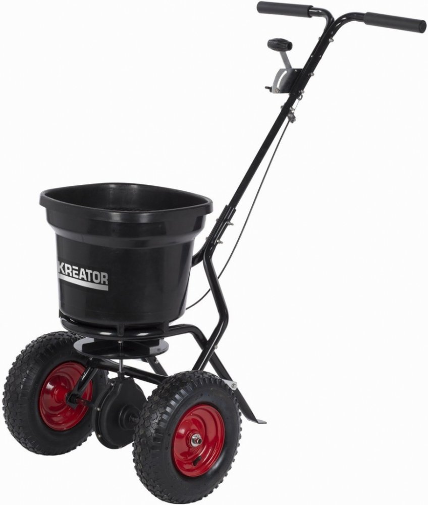 Zahradní rozmetadlo Kreator KRTGR9005 využijete při hnojení a setí záhonů a trávníků a v zimě solení chodníků a cest před domem. Nenoste v ruce těžký pytel nebo kýbl se semínky či solí a nasypte vše potřebné do nádoby rozmetadla s kapacitou až 23 kg. Pořiďte si praktického a všestranného pomocníka pro vaši zahradu.