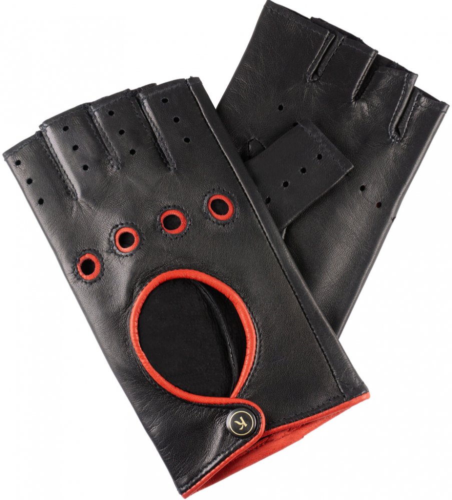 Kreibich dámské rukavice bezprsté černé,červený lem vícebarevné