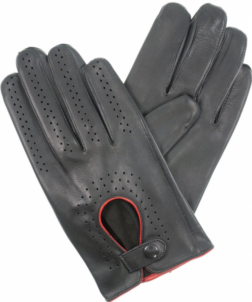 Kreibich Pánské rukavice řidičské černé / červený lem
