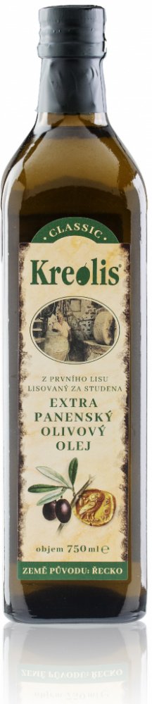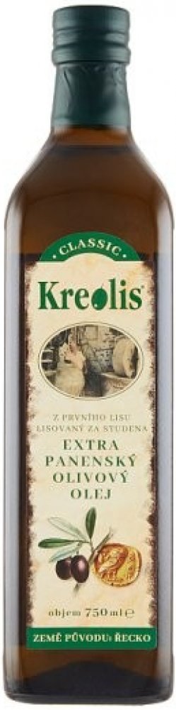 Extra panenský olivový olej Kreolis je výběrová jakost olivového oleje získaného z prvního lisu pouze mechanickými postupy – lisovaný za studena. Obsahuje pouze přírodní produkty bez konzervačních látek a chemických přísad. Výrazná barva a jemně ovocná chuť oleje je dána výběrem oliv s nejvyšším stupněm kvality. Zemí původu je slunné Řecko. Olivový olej Kreolis se v roce 2011 v testu kvality umíst...