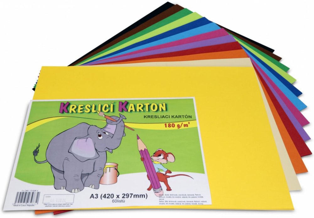 Kreslicí karton A3 - barevný, 180g/m2, 60 listů, 12 barev