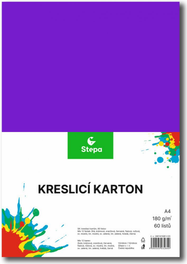 Barevný karton ve formátu A4 a gramáži 180 g je vhodný pro výtvarné, kreativní i školní projekty. Sada obsahuje 60 listů v pestrém barevném mixu, který nabízí široké možnosti pro tvoření. Je vhodný pro malování vodovými i temperovými barvami. Balení obsahuje tyto barvy: žlutá, krémová, oranžová, červená, fialová, růžová, sv. modrá, tm. modrá, sv. zelená, tm. zelená, hnědá, černá. Od každé barvy je 5 archů.