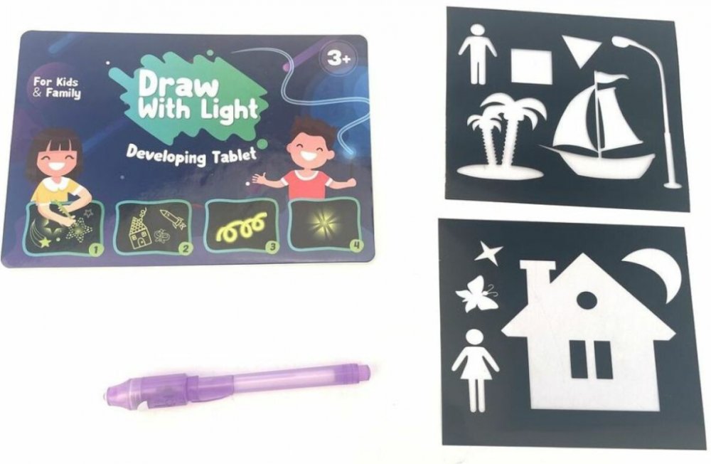 Kouzelná zábava pro malé umělce! S touto speciální tabulkou mohou děti kreslit „světlem“ – stačí kreslit „kouzelnou“ tužku a nechat své obrázky rozzářit ve tmě. Žádný nepořádek, jen čistá kreativita a zábava! Podporuje kreativitu a fantazii. Bez inkoustu, bez papíru, bez nepořádku. Lehká a snadno přenosná. Vhodná pro děti od 3 let. Skvělý dárek pro malé malíře a malířky!.