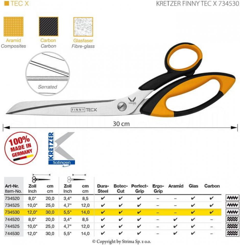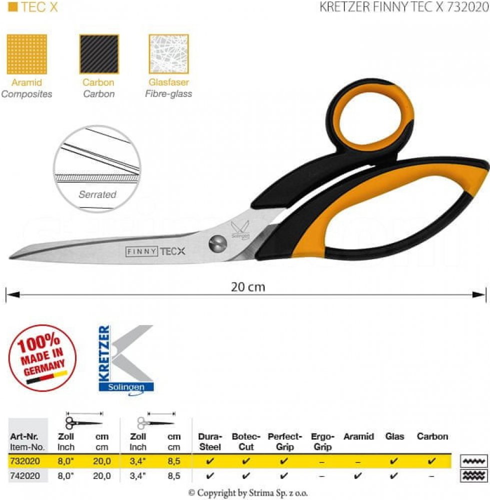 Průmyslové nůžky 734530 FINNY jsou lehké všestranné nůžky s mikrozoubky na jedné čepeli, vhodné zejména pro střih skelných vláken a lehkých aramidů.