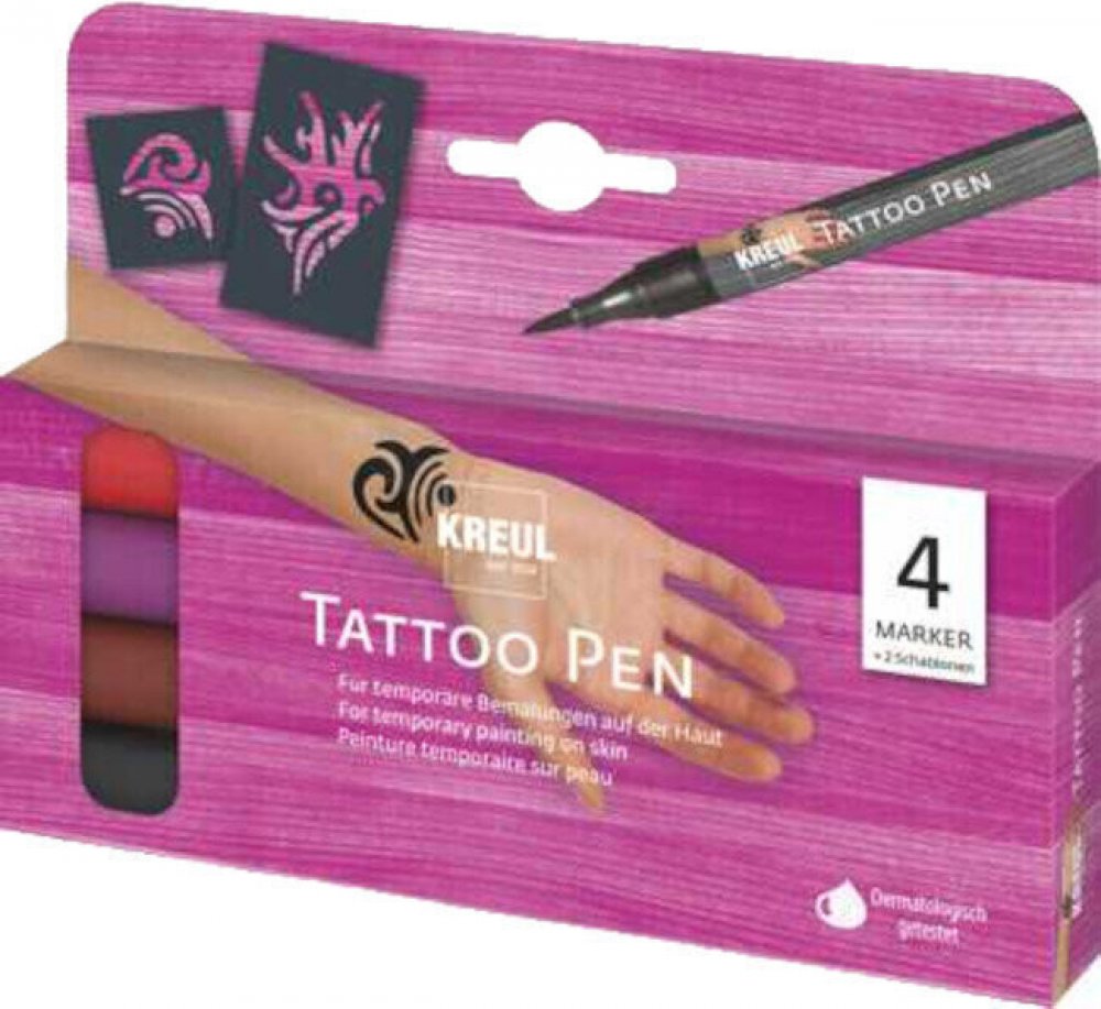 Každému malému výtvarníkovi udělají radost fixy Kreul. Jejich kulatý tvar se snadno drží a bude se tak s nimi dobře pracovat. Fixy s hrotem o šířce 3 mm zajistí krásně tučné tahy při malování i psaní. Náplň je z inkoustu na vodní bázi, který vám jen tak nevyschne. V balení dostanete 4 kusy. Kreul fixy jsou vhodné pro děti od 6 let. Hlavní vlastnosti fixů KREUL Tattoo Pen Set tetovací sada, 4 barvy...