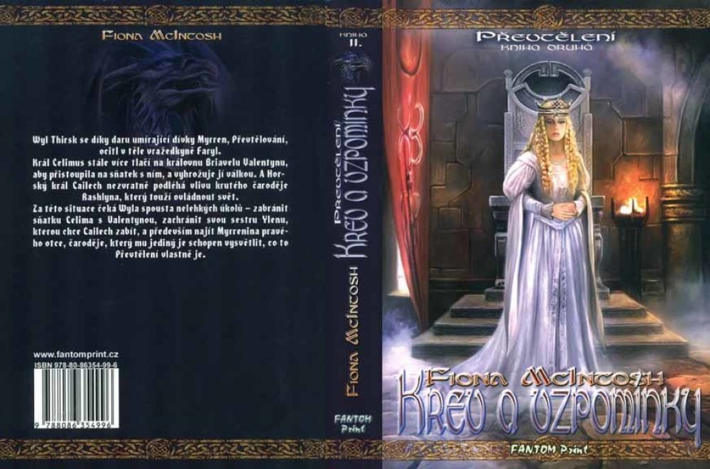 Publikace: Převtělení 2 - Krev a vzpomínky - McIntosh Fiona. Wyl Thirsk se kvůli daru umírající dívky Myrren, Převtělování, ocitl v těle vražedkyně Faryl. Král Celimus stále více tlačí na královnu Briavelu Valentynu, aby přistoupila na sňatek s ním, a vyhrožuje jí válkou. A Horský král Cailech nezvratně podléhá vlivu krutého čaroděje Rashlyna, který touží ovládnout svět. Za této situace čeká Wyla spousta nelehkých úkolů – zabránit sňatku Celima s Valentynou, zachránit svou sestru Ylenu, kterou chce Cailech zabít, a především najít Myrrenina pravého otce, čaroděje, který mu jediný je schopen vysvětlit, co to Převtělení vlastně je. Publikace: Převtělení 2 - Krev a vzpomínky - McIntosh Fiona.