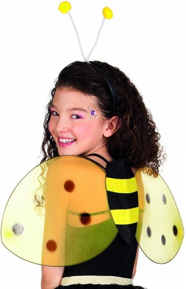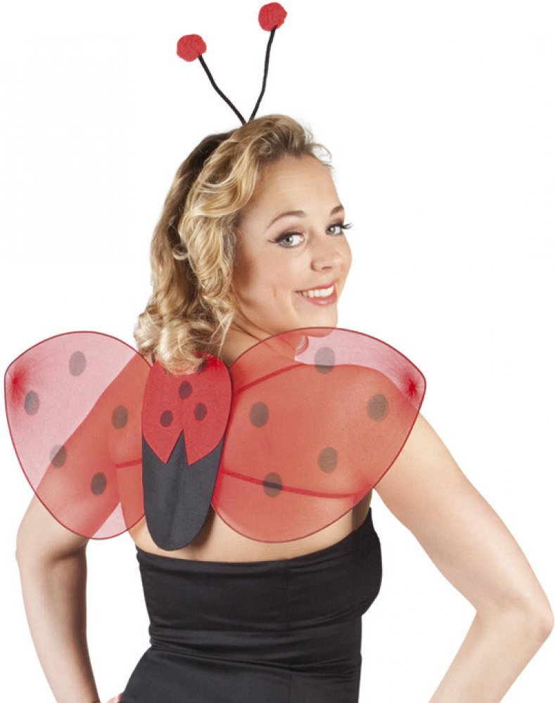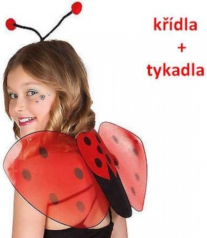 Křídla se uchytí za ramena gumičkou. Sada pro vytvoření kostýmu berušky.