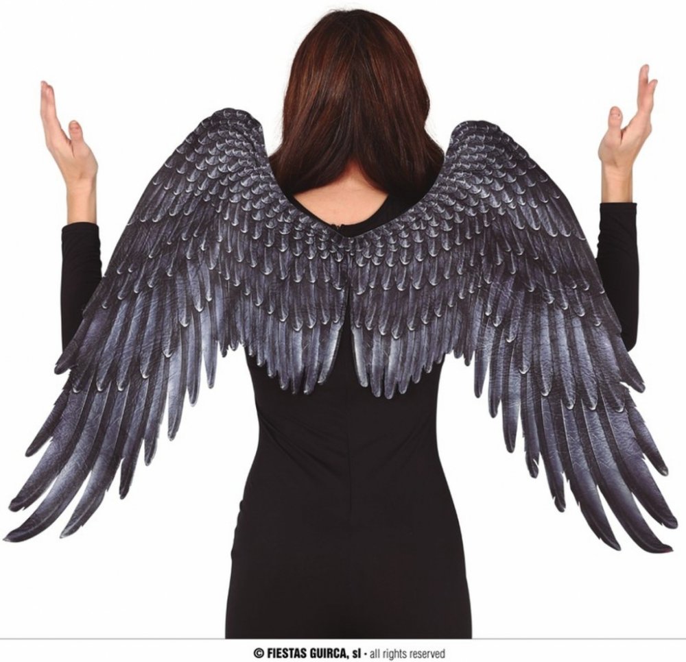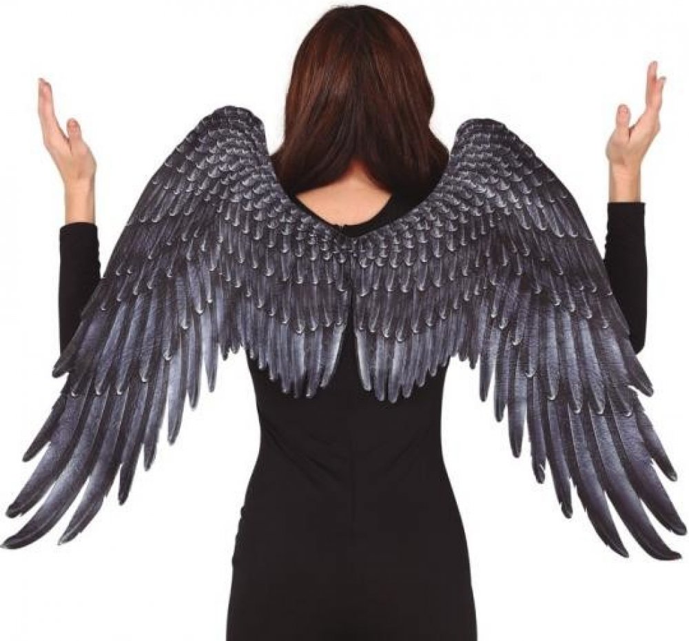 Andělská křídla černá - látková 100 x 70 cm. V luxusním provedení. Nutný doplněk ke kostýmu anděla smrti na halloween, karneval nebo tematickou party. Andělská křídla jsou vyrobena z kvalitního textilu, bez třpytek a netřepí se a vypadají velmi reálně. Jednoduše se křídla nasadí na ramena pomocí přišité gumy. Mají větší rozměry, jsou tedy vhodné spíše pro dospělé. Velikost: 100 x 70 cm Material: t...
