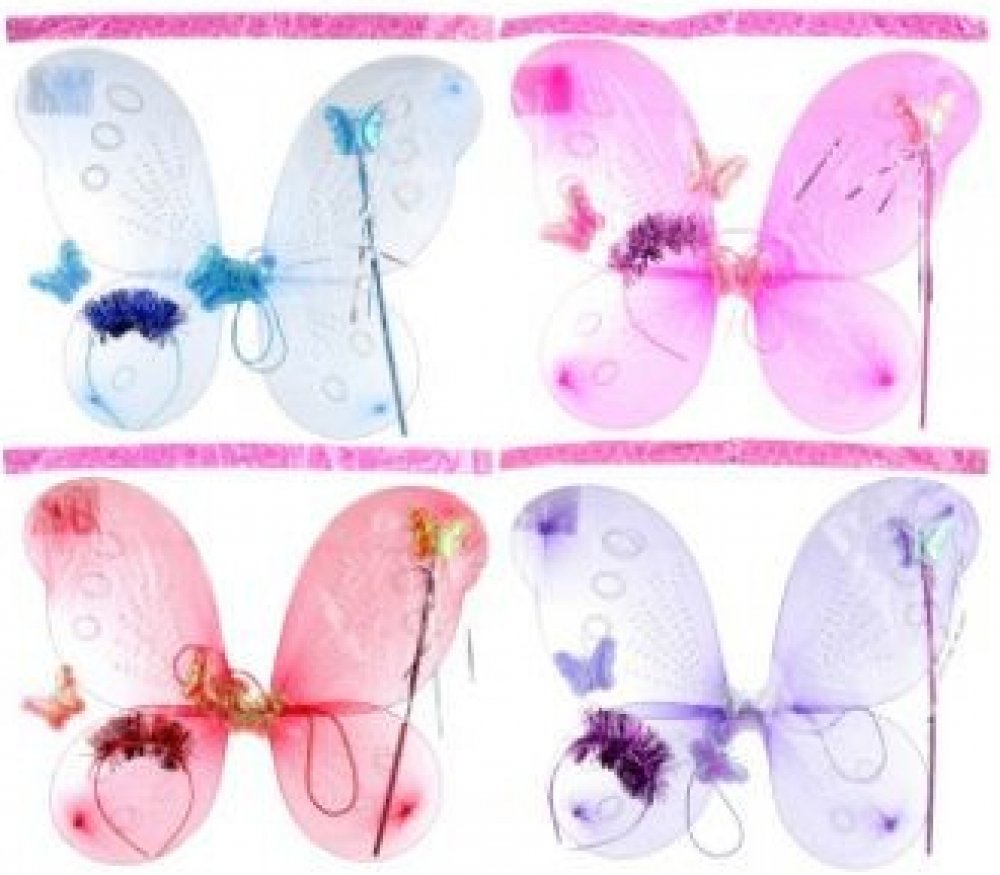 Pěkný dárek Karnevalová sada v podobě motýlích křídel, ve třech barevných variantách, v sadě s kouzelnou hůlkou a čelenkou na hlavu. Nezbytný karnevalový doplněk pro všechny víly a princezny. Baleno v sáčku.