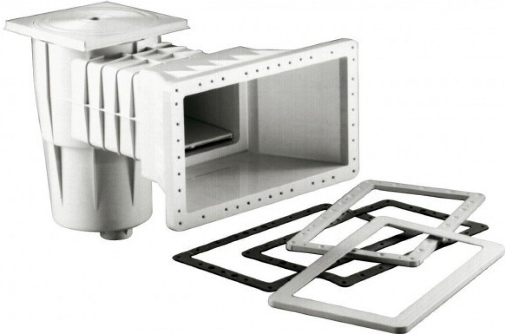 Skimmery KRIPSOL do betonu nebo fólie jsou vyrobeny z bílého vstřikovaného ABS. Kulaté víko upevněné na čtvercový rám. Dvířka sání se závěsy upevněny pomocí snadno vyměnitelných osiček z ABS.