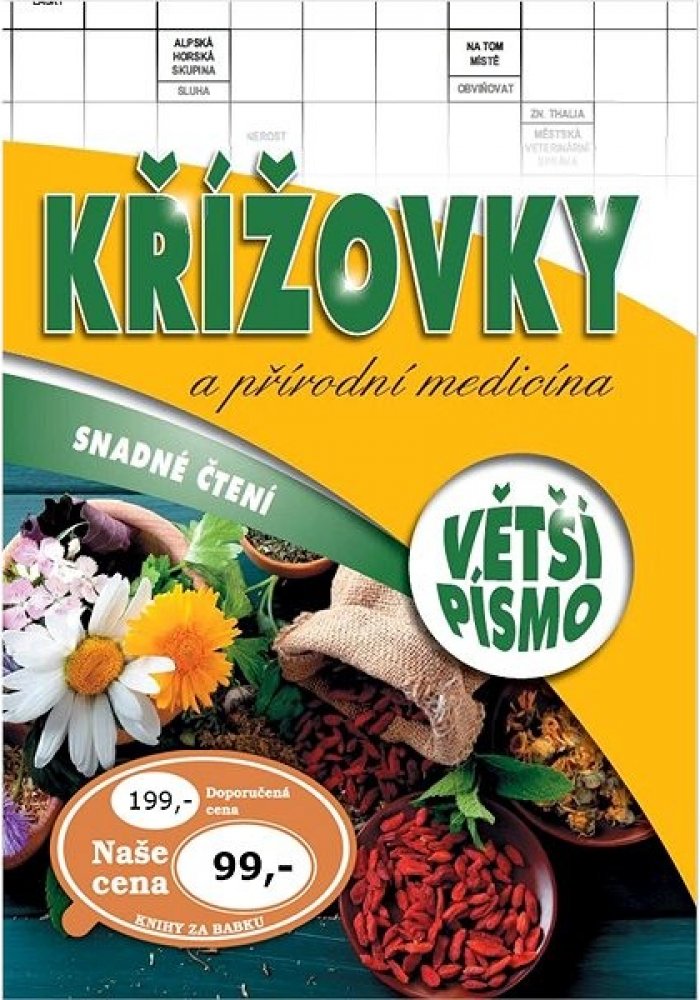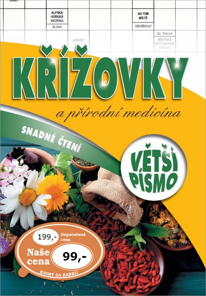 Publikace: Křížovky a přírodní medicína - neuveden. Jak si poradit s bolestí v krku? Jak vyzrát nad aftami či popraskanými koutky? V tajenkách těchto křížovek se dozvíte plno zajímavých poznatků a rad, jak zvládnout lehčí zdravotní problémy. Publikace: Křížovky a přírodní medicína - neuveden.