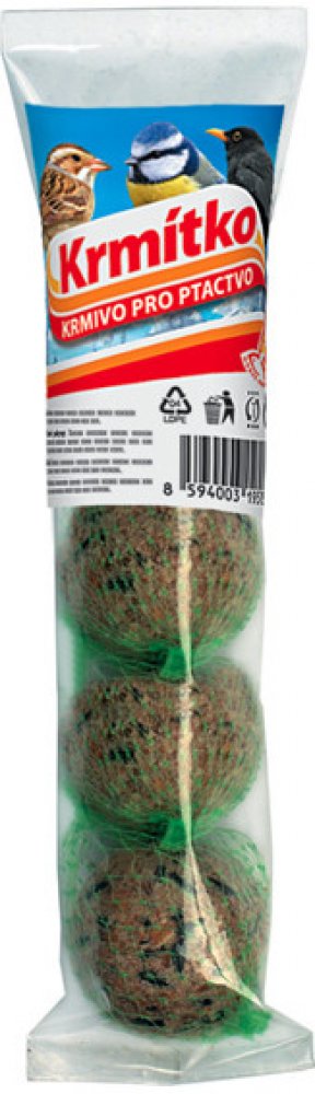 NG 9727fo Krmivo KRMÍTKO lojová koule s bílkovinou 4x90g 240x90x60Lojová koule s bílkovinou Krmítko je vhodná pro venkovní ptactvo jako doplňkové krmivo. V letních měsících slouží jako příkrm, v zimě při nedostatku potravy jako důležitá část krmiva ptactva. Kouli je třeba umístit na místo chráněné před deštěm. Je v síťce, kterou je možné v případě umístění do krmítka sundat. Skládá se z ovesných a...
