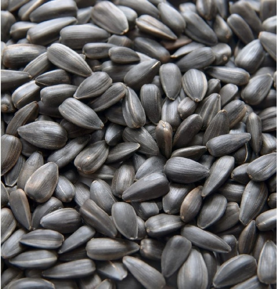 Černá slunečnice pro papoušky, hlodavce nebo venkovní ptactvo, zejména sýkorky.