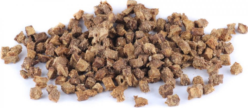 - Charakteristika: Syrové, pomleté kuřecí maso, usušené horkým vzduchem a tvarované do malých "kostek" o...