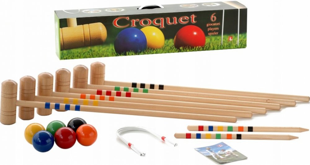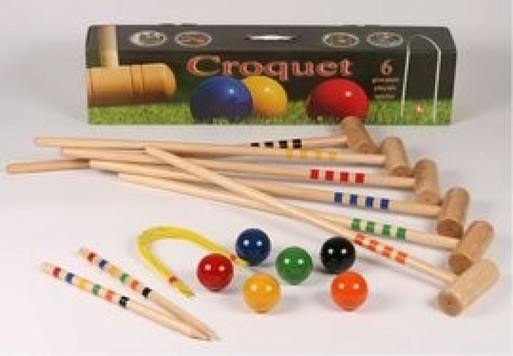 Populární zahradní hra kroket pro 6 hráčů v kartonové krabici.