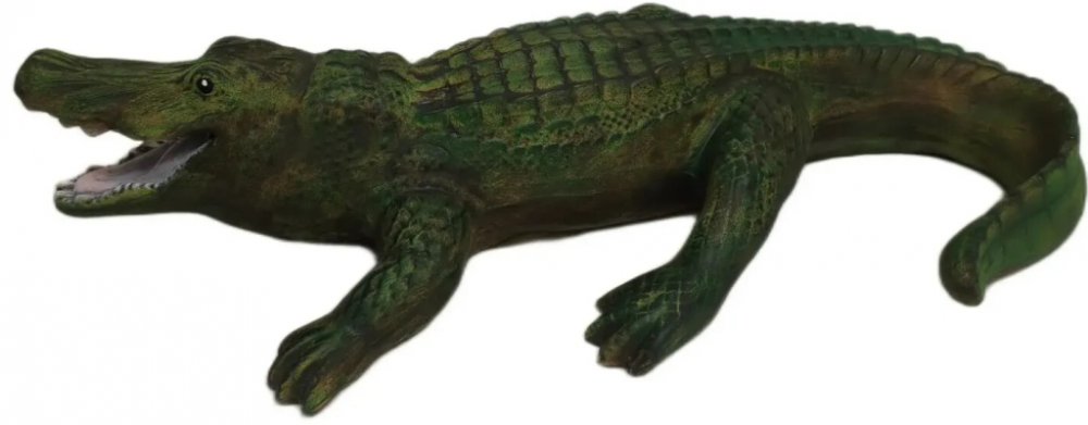 Krokodýl keramický. Zahradní, bytová, jezírková dekorace. Mrazuvzdorná zahradní nebo bytová keramika. Všechny výrobky mají vysokou odolnost vůči povětrnostním podmínkám. Česká ruční výroba, každý produkt je tedy originální a jedinečný. Keramická dekorace na zahradu nebo do bytu. Výška 9 cm, délka 40 cm, šířka 24 cm. Materiál keramika.