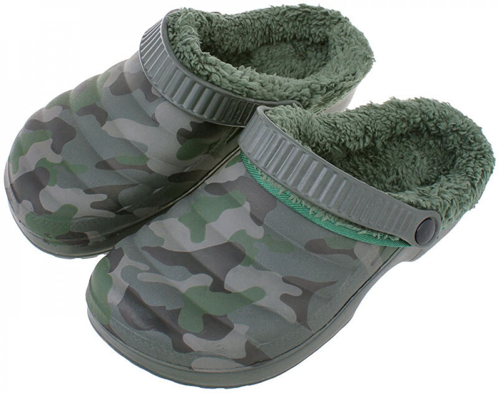 Klasická zimní obuv do domácnosti pro dámy, v army maskáčových barvách. Kroksy jsou celosvětově proslulé díky mnoha vlastnostem a výhodám, které nabízejí. Například jejich nápadité, rychlé a zejména pohodlné nazouvání a vyzouvání ocení opravdu každý. PVC materiál, ze kterého jsou tyto dámské kroksy vyrobené, vyniká svou nízkou váhou a poměrně měkkou strukturou, takže tyto dámské pantofle téměř ani neucítíte na nohou. Skvělou vlastností této obuvi je vestavěný pásek, který skvěle zapadne do designu této obuvi a zároveň přináší možnost fixace nohy. V tomto případě se jedná o zateplené kroksy s příjemnou textilií připomínající kožich, která perfektně zahřeje vaše nohy ve studených měsících. Kombinace PVC materiálu a izolačního textilu vytváří kvalitní izolant, který odděluje vaše nohy od studené podlahy či chladnějšího vzduchu, díky čemuž si už nebudete muset navlékat několik párů ponožek najednou.