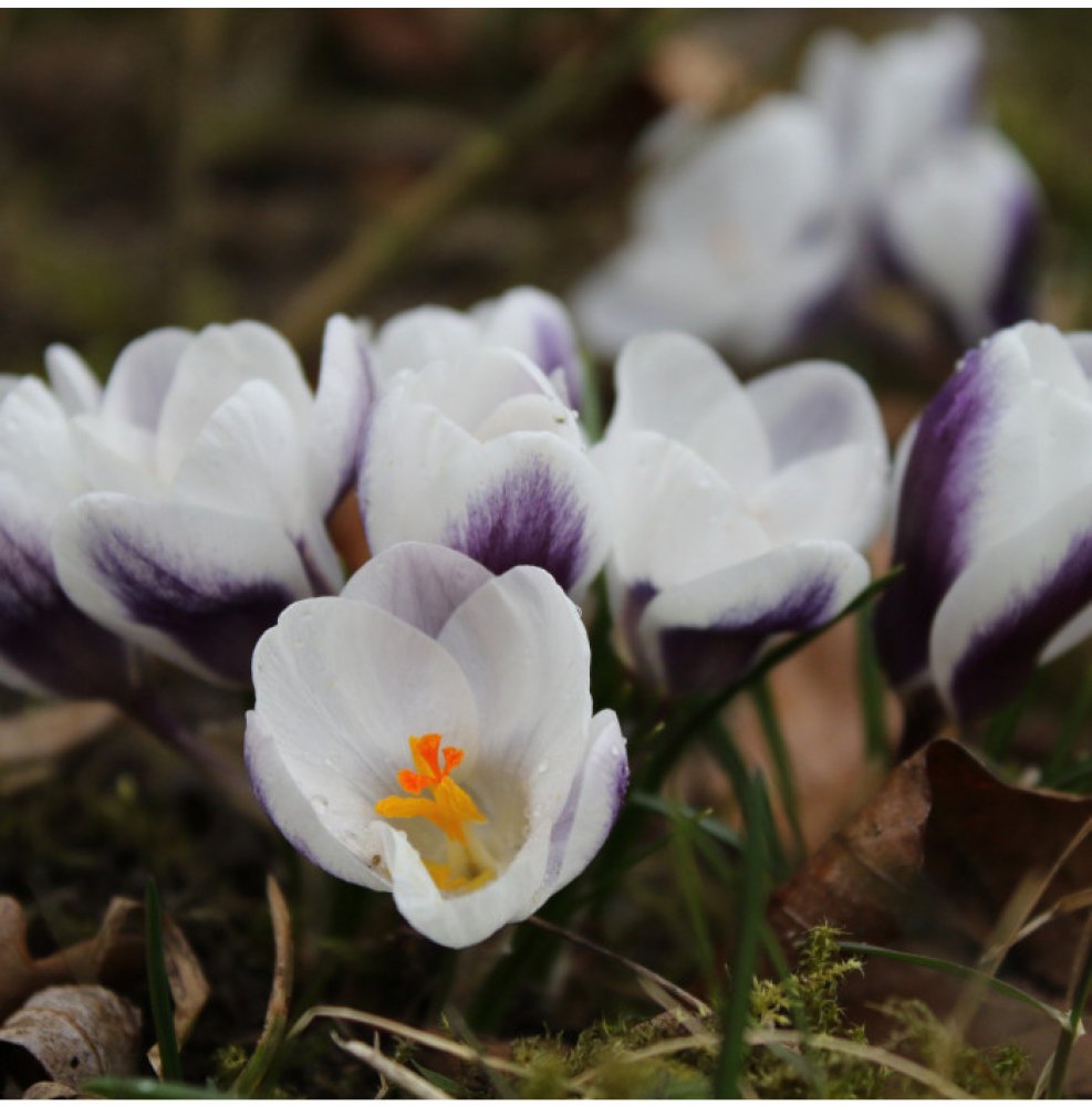 Botanický krokus Prins Claus je velice atraktivní odrůda. Květy se objevují velice brzy z jara, jsou bílé barvy s tmavě fialovými odstíny.
