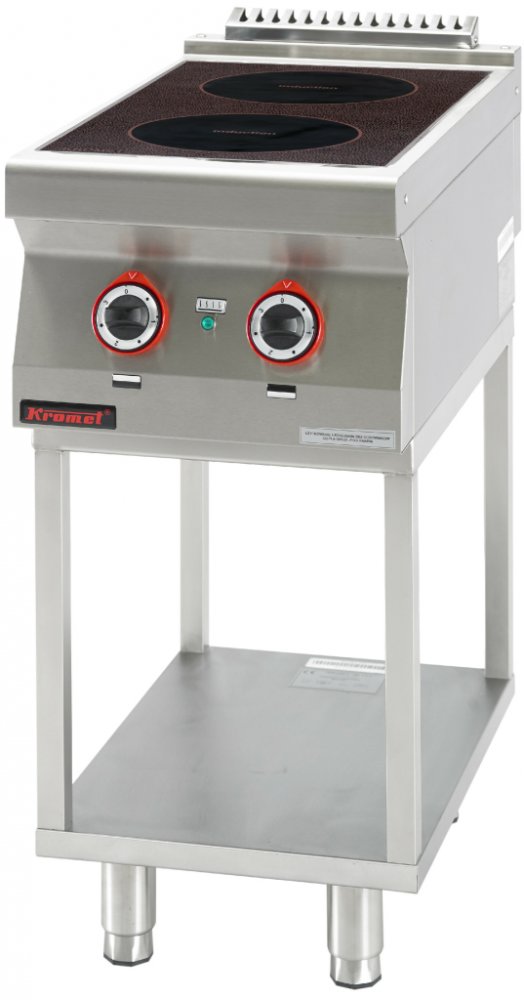 Indukční vařič je vyrobený z vysoce kvalitní nerezové oceli. Je umístěn na podstavci. Pracovní plocha je vyrobena z kyselinám odolné nerezové oceli AISI 304 o tloušťce ≠ 1,5 mm. Snímač přítomnosti hrnce. Plynulá regulace výkonu od 5 do 100 %.Výkon: 7 kWŠířka: 400 mmHloubka: 700 mmVýška: 900 mmPočet plotýnek: 2 Výkon plotýnek: 7 kWTrouba: NeNapětí: 400 V
