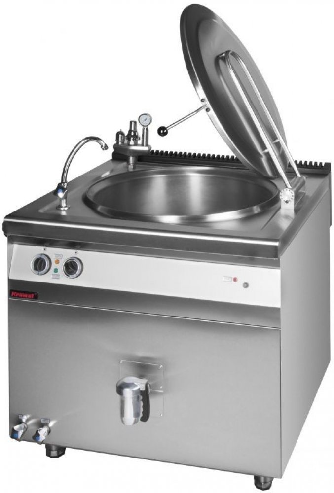 Elektrický varný kotel 900.BEK-150 - nepřímý ohřev s automatickým dopouštěním Označení 900.BEK-150 Výkon 18,5kW Objem 150 ltr. Napětí 400V / 50Hz Rozměry 900x900x900 Ohřev nepřímý Připojení vody 3/8" (teplá i studená) Výpustný ventil 3/2" Plynulá regulace výkonu, výpustný ventil 1,5 palce. Spínače a regulátory výkonu E.G.O., vypouštěcí ventil ECHTERMANN, bezpečnostní ventily Rubinetterie del...