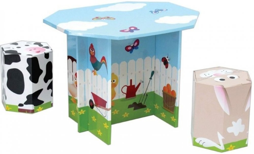 Pevná a odolná sada - stoleček a dvě židle se skvěle hodí do každého pokojíčku a udělá radost holkám i klukům. Je vyrobena z velmi pevného a stabilního kartonu, který je potištěn povlakovou hydroizolací, je tedy odolná proti vlhkosti. Sada nemá ostré hrany a je sestavitelná bez jakéhokoliv nářadí.