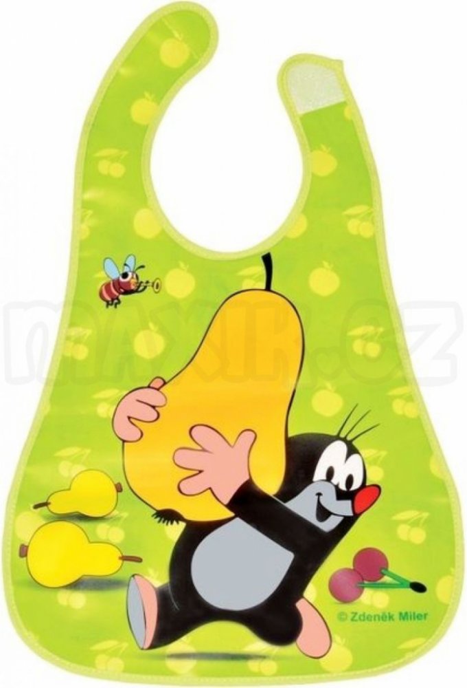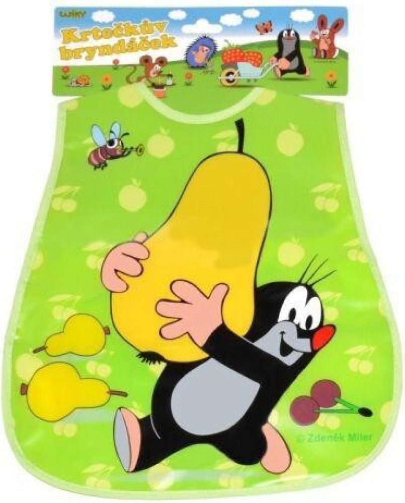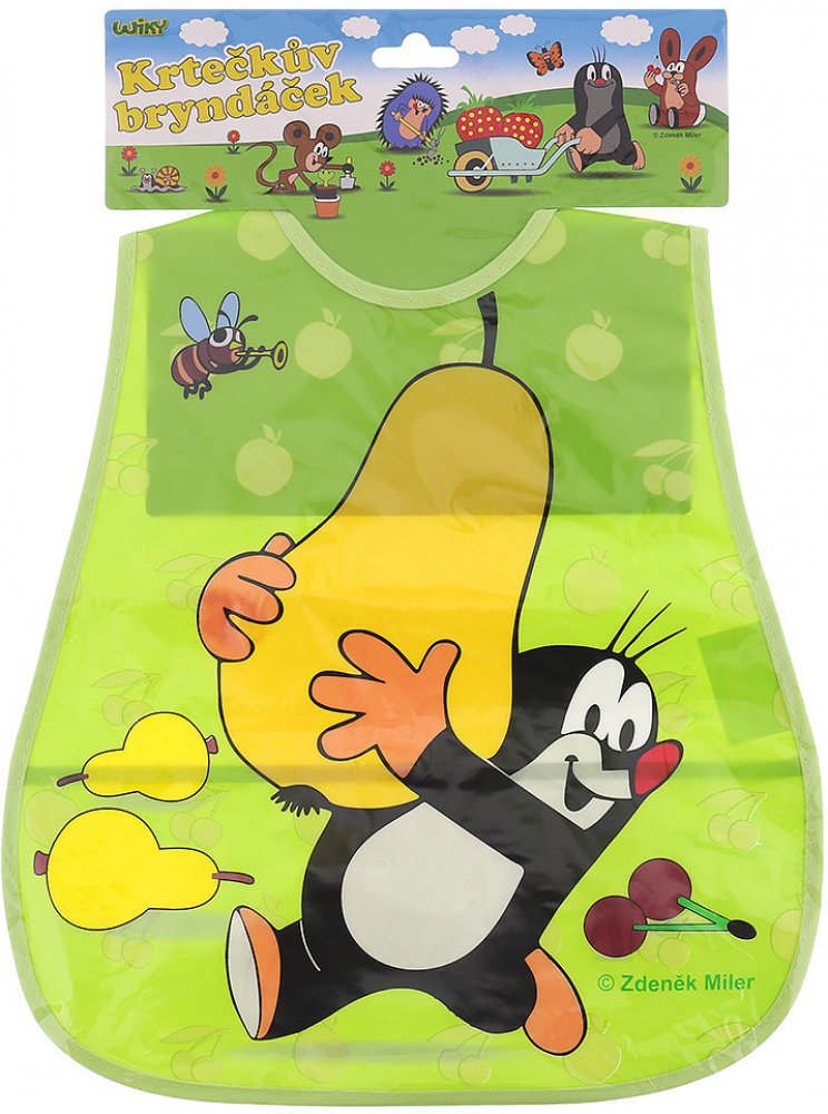 Krásný bryndáček s motivem pohádkového Krtečka. Nejenom ochrání oblečení dítěte před znečištěním, ale zároveň vykouzlí úsměv na tváři dítěte. Pro pohodlí vašeho dítěte je okraj kolem krku olemován bavlněnou tkaninou a zapíná se jednoduše a rychle na suchý zip.