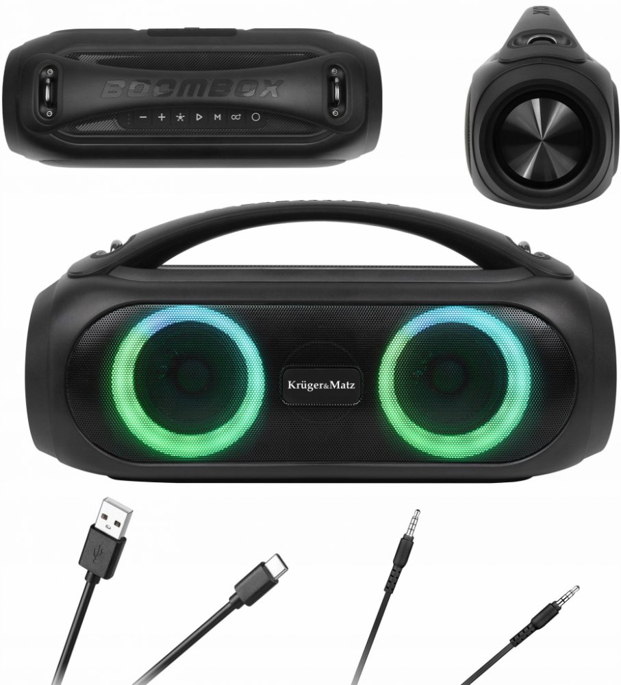 Kruger&Matz 5 h Kruger&Matz Joy aktivní 2 IPX5 na baterie (akumulátor) 3000 mAh 35.6 cm 17.8 cm 13.4 cm 2.28 kg 60 dB Velké venkovní / party pokojové základní voděodolné USB-C 5.0 h Stereo párování 3 20 W samostatný reproduktor 4.0 ohm 70 Hz 16000 Hz 5.1