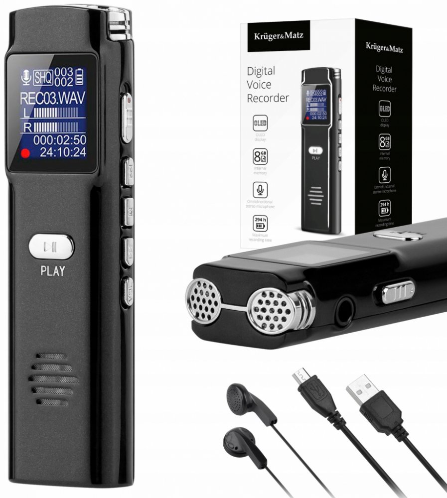 Malý, lehký, šikovný - snadno se vejde do malé kabelky nebo kapsy. Takový je digitální záznamník hlasu Kruger & Matz KM0286 s osvětleným OLED displejem.
