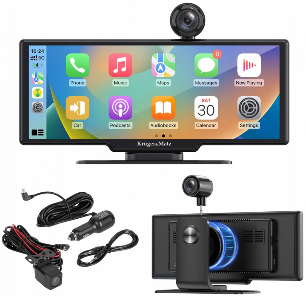 Multimediální stanice Kruger&Matz KM2021 Proměňte každou nudnou cestu autem v jedinečný zážitek! Multimediální stanice Kruger&Matz díky integraci s Android Auto a Apple CarPlay a také funkcím záznamníku jízdy a couvací kamery promění váš vůz ve skutečné centrum zábavy. Užijte si pohodlí, technologie a styl na každém kilometru! 9" dotyková obrazovka Velká 9palcová dotyková obrazovka zaručuje vynikající čitelnost a intuitivní ovládání. Vysoké rozlišení displeje a citlivost odezvy dělají používání navigace, multimediálních aplikací nebo záznamníku jízdy pohodlným a příjemným. Ovládání zařízení je plynulé a rozhraní je přehledné a snadno se přizpůsobí. Android Auto a Apple CarPlay Díky vestavěné podpoře pro Android Auto a Apple CarPlay máte rychlý přístup k vašim oblíbeným mobilním aplikací