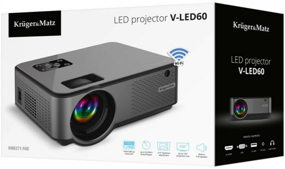 LED projektor KRUGER & MATZ promění váš obývací pokoj v kinosál. Užijte si oblíbený film na velkém plátně jak jste zvyklí v kině!