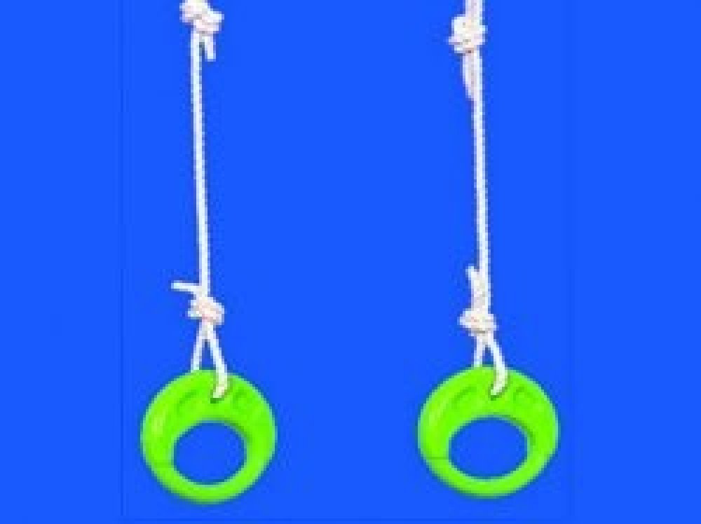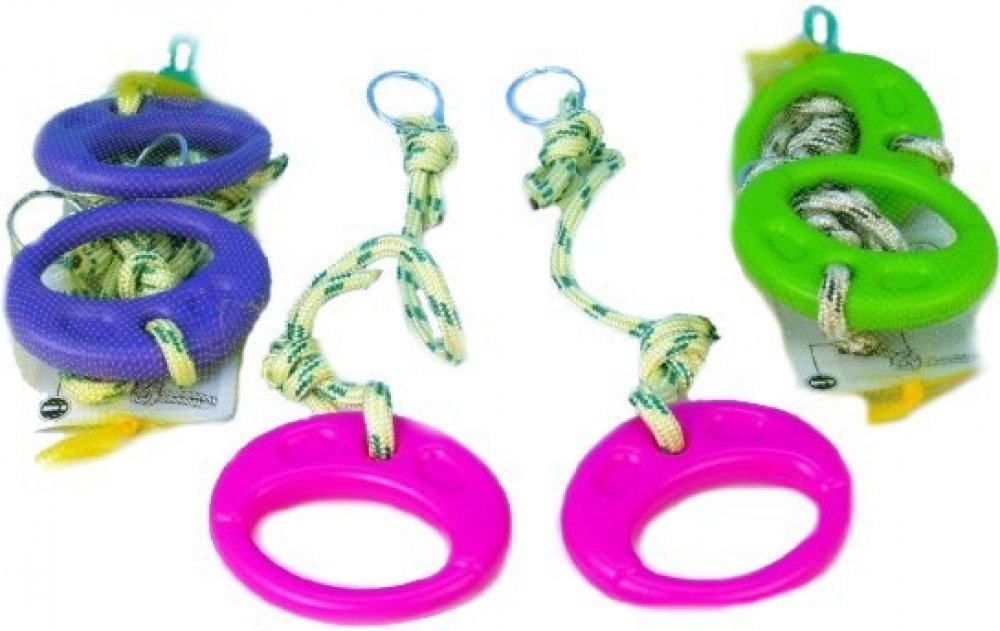 Dětské kruhy na cvičení z plastu, včetně oka pro zavěšení.