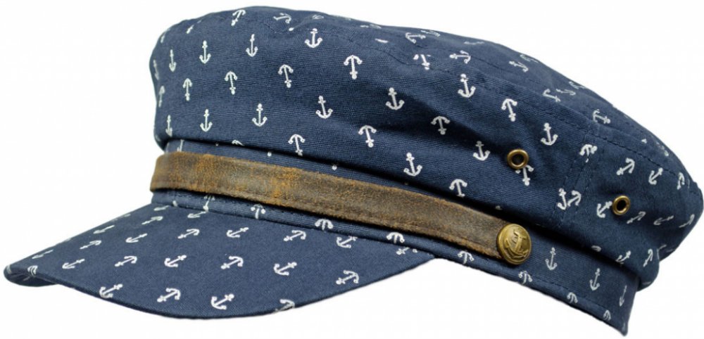 Kapitánská čepice ozdobena páskem z broušené kůže, vintage washed cotton - vintage sepraná bavlna. Modrá bavlněná kapitánka Vás spolehlivě ochrání před sluníčkem. Všitý potní pásek a bavlněná podšívka zajistí komfortní nošení. Kapitánské čepice jsou skvělým stylovým doplňkem.