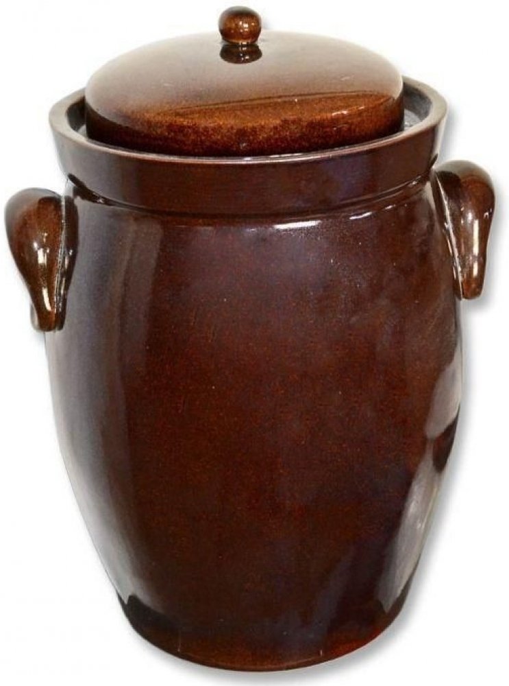 Keramický glazovaný hnědý lesklý zelák s víkem a s uchy. Zelák je v půdorysu kruhový. Tvar má kónický, kdy se v horní části, kde jsou připevněná keramická ucha začne opět uzavírat. Horní ohraj je poté kolmý rovný pruh. Na něm je položené víko. Zelák se používá ke kvašení a skladování zelí a pro jinou podobně zpracovanou zeleninu. 7l Rozměry: d. 24,5 x v. 28,5cm, 10l Rozměry: d. 30 x v. 32cm, 16l Rozměry: d. 34 x v. 37cm a 26l.Upozornění: Způsob dopravy pouze "Osobní odběr Praha 10 nebo Jinočany" a "Louka rozvoz" (náš vlastní rozvoz, praha a okolí). Z důsledku velkého množstvý rozbitých zeláků