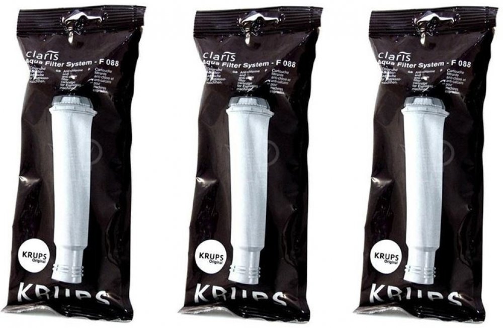 Filtr do kávovaru značky Krups 3 ksKrups F08801 Aqua Filter Claris je originální vodní filtr do kávovarů. Filtrační patrona, která je umístěna v zásobníku na vodu odstraňuje z vody nežádoucí látky jako je vápník, chlór, těžké kovy a vodní kámen.Přefiltrovaná voda má ideální vlastnosti pro přípravu lahodné kávy.Vodní filtr redukuje vodní kámen a tím chrání váš kávovar před jeho usazováním. Kdy vymě...