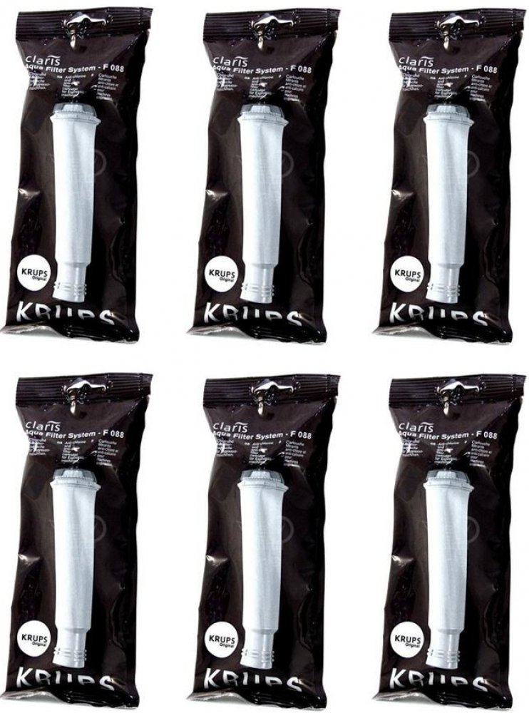 Filtr do kávovaru značky Krups 6 ksKrups F08801 Aqua Filter Claris je originální vodní filtr do kávovarů. Filtrační patrona, která je umístěna v zásobníku na vodu odstraňuje z vody nežádoucí látky jako je vápník, chlór, těžké kovy a vodní kámen.Přefiltrovaná voda má ideální vlastnosti pro přípravu lahodné kávy.Vodní filtr redukuje vodní kámen a tím chrání váš kávovar před jeho usazováním. Kdy vymě...