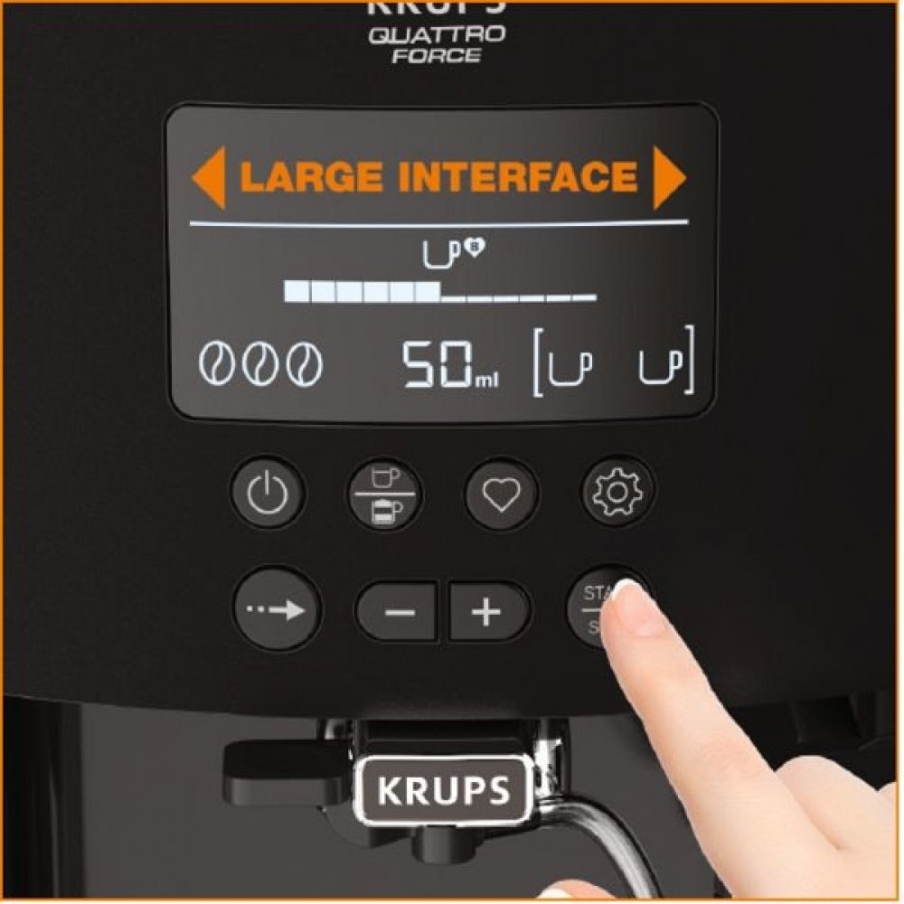 Každý den, šálek po šálku, vždy dosáhnete dokonalé chuti kávy. Kávovar Krups Essential je vybaven jedinečnou technologií Krups Quattro Force, která zajišťuje vyváženou kávu s explozivním aroma a chutí. Systém Krups Quattro Force optimalizuje každý krok přípravy espressa pro dosažení nekompromisní kvality od fáze zrnka po šálek – jako byste měli baristu v pohodlí svého domova.