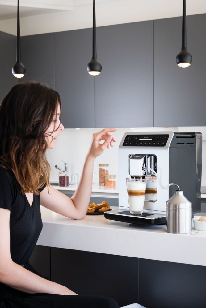 Moderní design, vysoká kvalita zpracování a kompaktní rozměry. I přesto se kávovar vyznačuje komfortně velkými objemy nádržky na vodu (2,3 l) a zásobníku kávových zrn. (260 g).