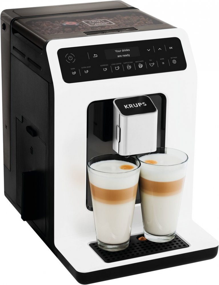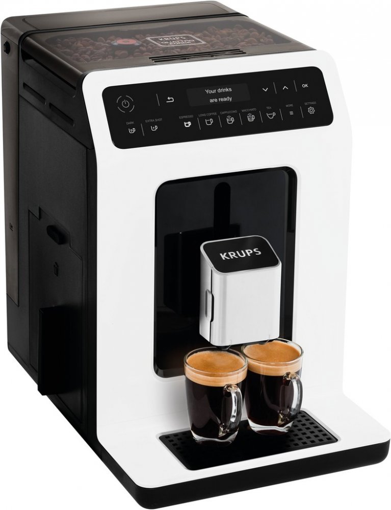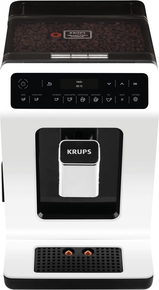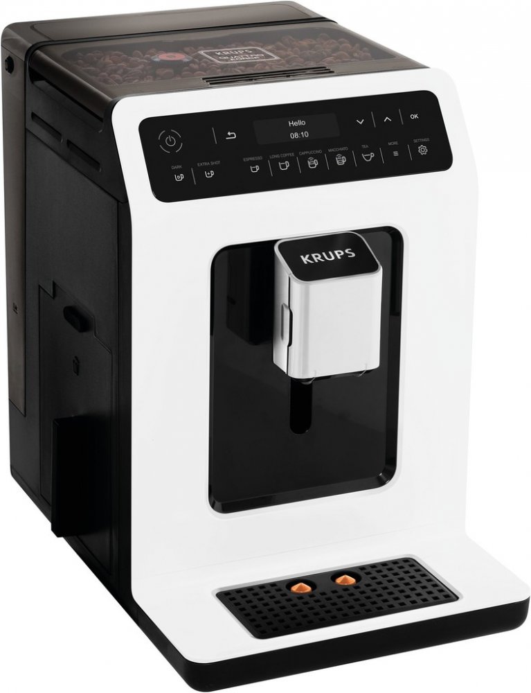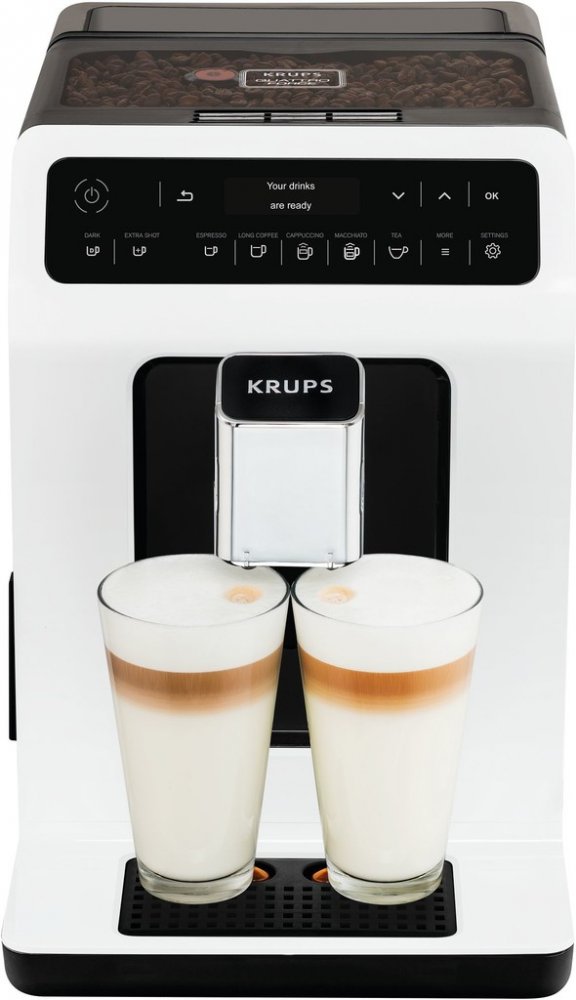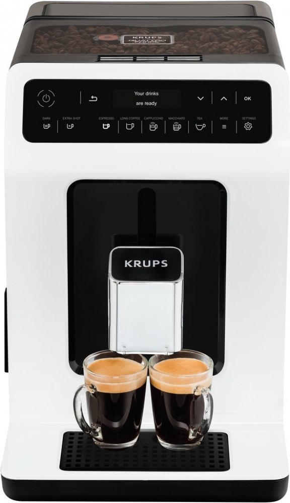 Krups bílá dotyková tlačítka s trubičkou z krabice 15 bar 2.3 l 260 g 260 g 10 porcí 158 mm 1 dotykový displej pro latté sklenice a termohrnky s nádržkou na vodu 1450 W ocelové 3 8.4 kg 36.3 cm 24 cm 37.2 cm pro 3-4 osoby kompaktní 15 standardní