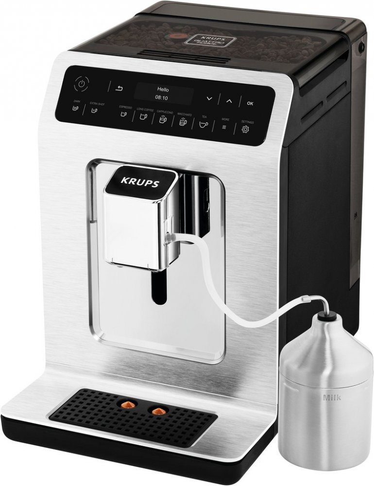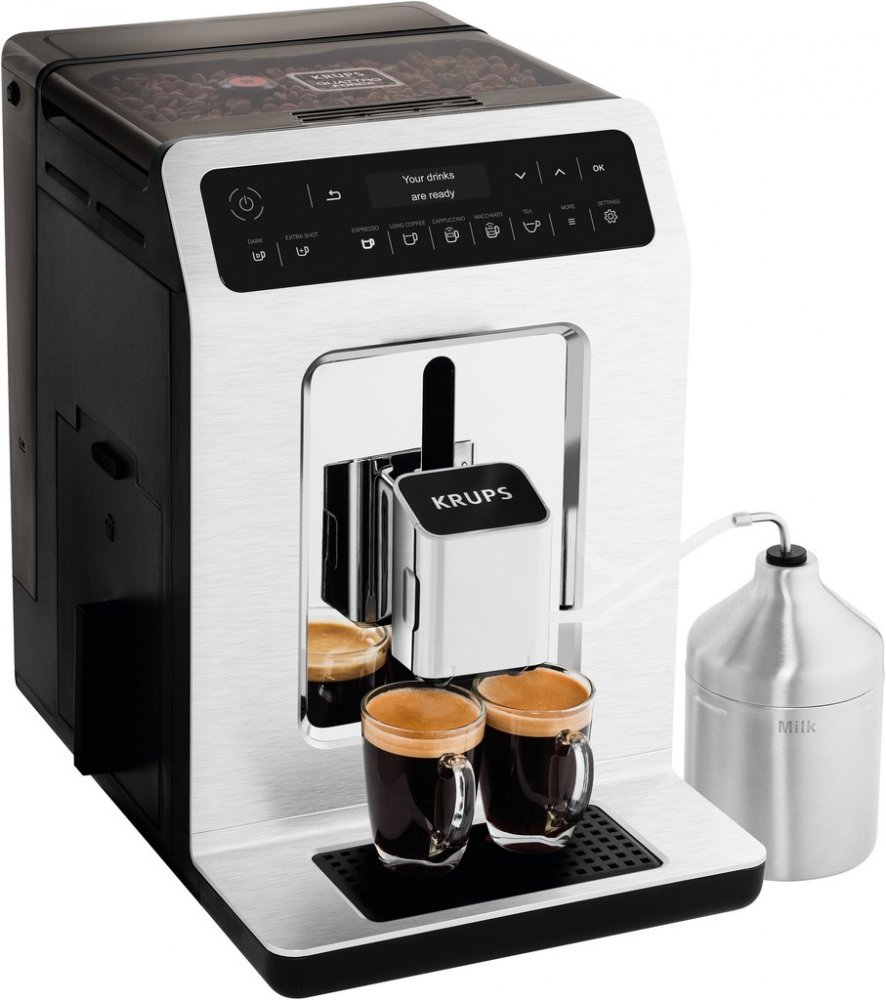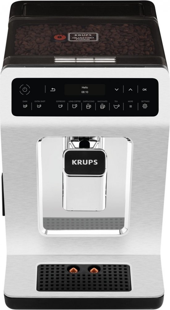 Krups stříbrná mechanické s trubičkou z krabice 15 bar 2.3 l 260 g 10 porcí 158 mm 1 monochromatický LCD pro latté sklenice a termohrnky s nádržkou na vodu 1450 W ocelové 5 8.4 kg 36.3 cm 24 cm 37.2 cm pro 3-4 osoby kompaktní 8 standardní