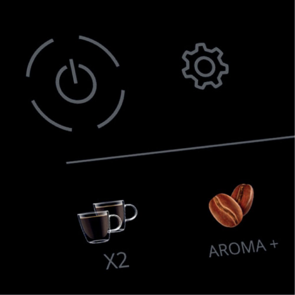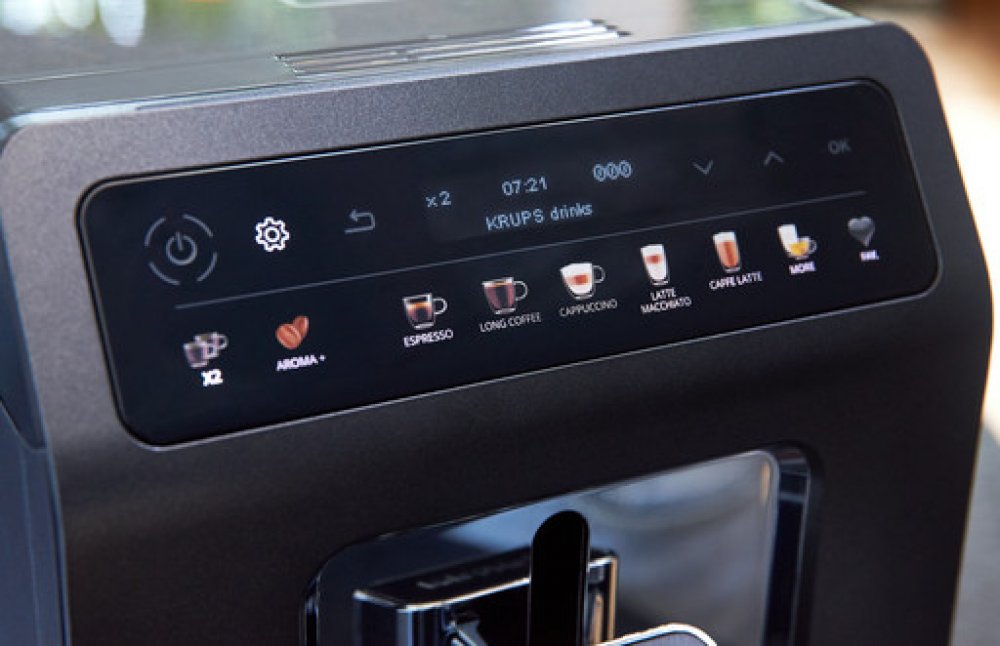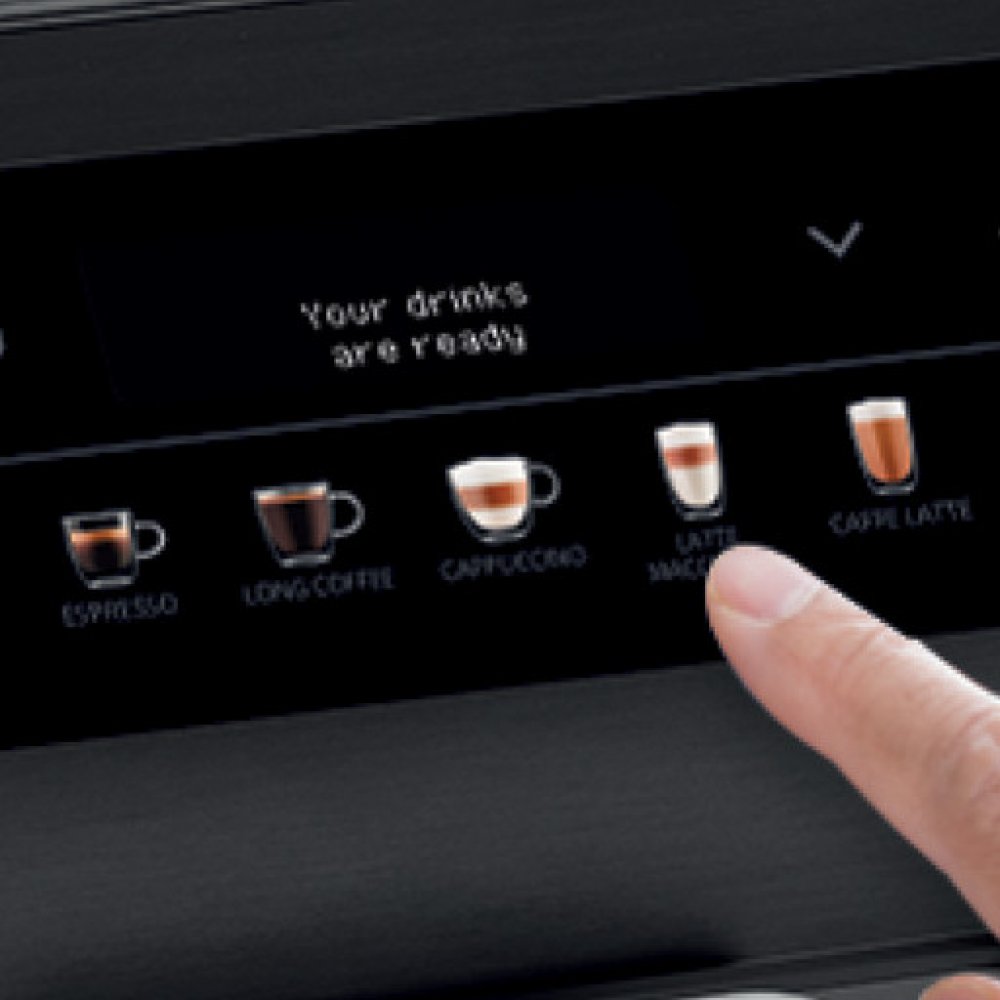 Na přední straně přístroje najdete velký intuitivní dotykový panel. Obsahuje realistické barevné ikonky a OLED displej se světelným naváděním. Vždy proto přesně víte, jaký nápoj se připravuje.